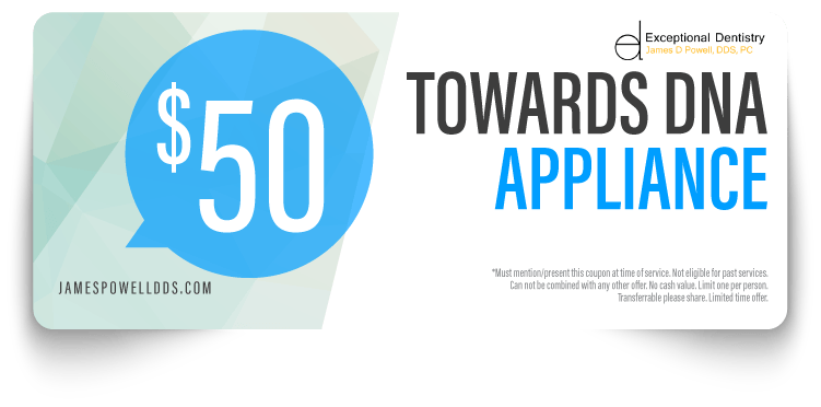 The good news is, though, that Dr. James D. Powell has a solution to help you fight the symptoms of sleep apnea – the Daytime-Nighttime Appliance (DNA Appliance®).